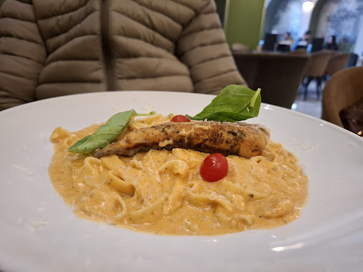 The place is beautiful, the food is good, and the service is friendly. The menu is diverse, although there are some peculiar choices for an Italian restaurant, like pasta with beef fillet 🫣 or the many chicken pizzas 🤔. The décor, lighting, and music are perfect, but the only downside is the kitchen ventilation: you leave the place feeling like you need to change your clothes immediately. I would have loved to meet the creator of "La Bruschetta," a brilliant young person I follow on social media and deeply admire for their character, but maybe next time. Compliments to the team—keep up the great work and consider investing in better ventilation ❤️.