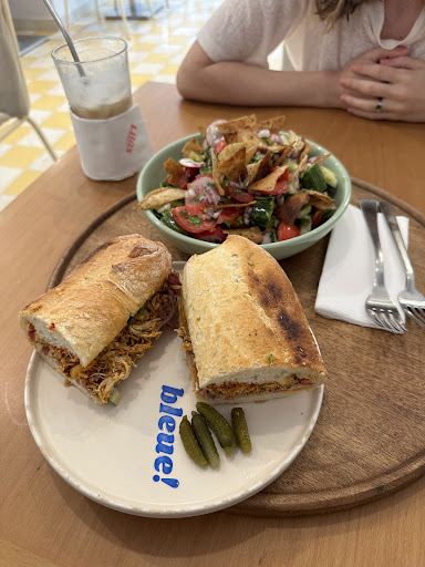 Read moreFood is fantastic and I love sitting out or in. Unfortunately the coffee is appalling - they burn it and it tastes so bad that you're not sure if it is Arabic coffee they have used by accident. I wouldn't care about this normally since in Tunisia most coffee is like this because people don't care about quality - but Bleue! is charging 6 dinar (the same as Ben Rahim!) for coffee that you don't want to drink. I normally pay around 2 dinar for this quality of coffee. Come on, bleue! - you should do better. (Service is average - they often forget parts of my order, it takes 10 minutes to receive your coffee and the tables are not regularly wiped between clients so you are always touching...