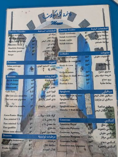 Cons: The food was very bland. I'm used to my grandmother's and mother's Tunisian cooking, and this was such a pale imitation of what Tunisian cooking represents. There was no seasoning. Zero. The Couscous had no flavour, the carrots seemed simply boiled and added, the meat was the only redeeming factor and there wasn't much of it unfortunately. The briques were extremely bland too, again no seasoning on anything it was very disappointing for our first Tunisian dinner. I had to spend the evening apologising to my foreign friends, explaining that the food in Tunisia is normally much better than this as they thought it lacked any kind of flavour. The restaurant also has a cat problem which isn't completely their fault but surely something can be done by the staff because they seemed to have given up and let the cats annoy the guests, steal food, and fight next to us.