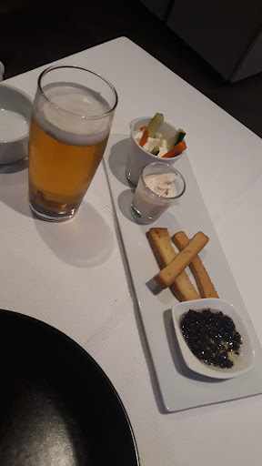 Read moreSitué juste derrière Novotel et Ibis, à 1 minutes à pied, il est peut être un peu excentré par rapport au centre de Tunis. Si on fait abstraction du gros chien attaché à un poteau électrique juste en face, et une fois que l'agent de sécurité ouvre la porte et vous laisse entrer après avoir vérifié la disponibilité d'une table à l'étage, vous entrez dans un espace très agréable. Design très soigné sur 2 étages. Au 1er, un grand bar, et un mix de tables hautes et d'autres basses ainsi qu'un espace lounge. Au second, c'est un "balcon" qui surplombe le bar aménagé en espace restaurant très agréable avec des tables bien dressées et une belle décoration avec des tableaux de peintres tunisiens. Le service est très agréable et efficace. Le personnel est très agréable, sympathique et disponible. La cuisine est excellente et digne de meilleurs restaurants tendance parisiens. J'y suis allé 2 fois cette semaine. Vendredi soir, c'était une chance de trouver une table. Pensez à réserver le week-end. Il y a toujours de la music, souvent live, le niveau sonore est assez élevé. En afterworks "très à la mode à Tunis" c'est un peu plus calme. J'y retournerai sans faute lors de mon prochain...