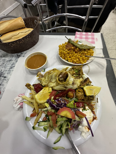 This place was the perfect fit for us. It was open until late (we went there at 00h after arriving from the airport) and the people were so nice to us. The food was super good (also some things quite spicy but we like that) and it was very cheap ! For half a chicken, beans, fries, salad, pasta, bread, different sauces we paid 6 euros each. The other clients were only locals and the atmosphere was nice. The waiter was very sweet and spoke English and French and at the end of the meal when I asked for a box to take away the rests of my plate (half a chicken is actually super big) he gave me more salad as he saw I liked it a lot. If you are a foreigner who does not go where to go in Tunis I...