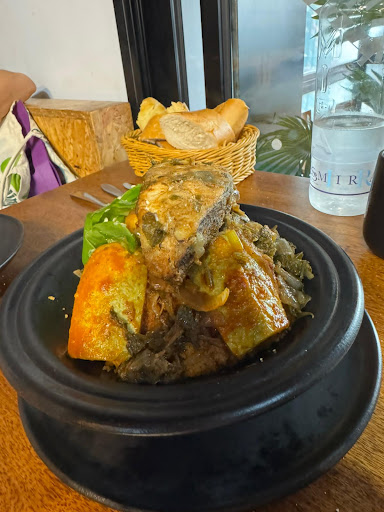 Read moreThe service in the restaurant was very nice and efficient. The food focuses on local cuisine, and I expected it to be a bit spicier. I ordered a sandwich with egg and prawns for starters. It was quite good. The egg was perhaps a little too loose. For the main course I had lamb with couscous. There was a lot of food and I couldn't eat it all. There was a lot of fat in the lamb. I don't know if that's the intention, but I felt that there was little actual meat compared to the couscous. The bread served as an appetizer was...