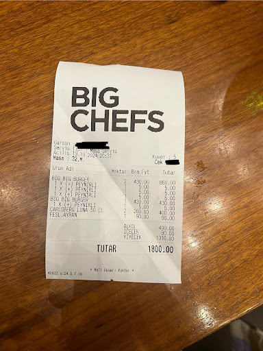 Today we were shopping near Kent Park and visited Big Chefs to close our day. We have been to several Big Chefs in Istanbul, Ankara and Bodrum but this one in Kent Park is on another level. They really created such a nice environment. The atmosphere is awesome. I chose the BBQ burger and Menekşe the Falafel. We were both pleased with the quality of the food. Next time we are in Ankara we will come again. René...