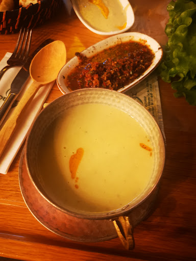 Çorbası abartılacak lezzette değildi. Tahta kaşık ve bakır kasede sunulmuştu. Ortaya konan o poşet üstü yeşillikler çok anlamlı değildi bence. Yemeyen başka masalarınkini yıkayıp önümüze koyuyor olabilirler :) ki bu iyi bir şey israf az.