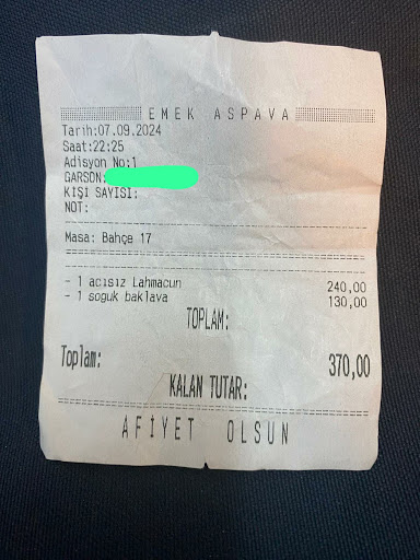 Arkadaşım yorgun halde olmasına rağmen bize önerdi "çok güzel aspava mezesiyle ikramlariyla çok ilgileniyorlar" dedi. Araçla geldik ve iner inenmez "ooo abim hoşgeldin " ile karşılandık. Mekânda tanınan müşteri olmanın mutluluğunu yaşadık. Arkadaşım Lahmacun söyledi , bizler tok olduğumuz için çay içtik. Tatlı faslına kadar gayet güzel gitti. Tatlı istediğimiz de bizlere tatlının ücretli olacağına yönelik bilgilendirme yapılmadı. 3 kişi bir semaverde çayı içtikten sonra 2.semaver için "ekstra oluyor abi" ibaresi kullanıldı. Ankarada o kadar Aspavalarda yemek yedim sınırsız ikram edilen tatlının ve çayın ekstra ücret alındığı bir tecrübemiz oldu. Gitmiş olduğumuz bu işletmenin bu davranışı yüzünden Aspava kültüründen de soğuduk.