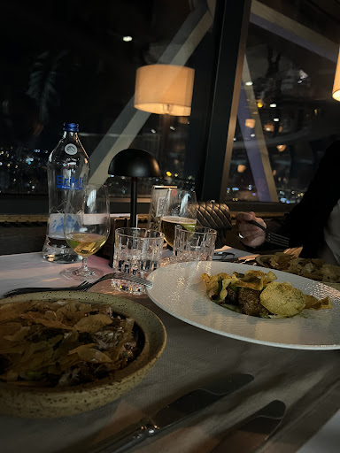 Read moreFine dining konseptlerin Ankara’da arttığını görmek çok sevindirici. Nakia da bu restoranlardan birisi. Aslında geleneksel tatları şefin özel sunumlarıyla servis etmeleri restoranın iki orijinal yanından biri. Bu konuda başarılı gayet. İkinci orijinalliği ve Türkiye’de kaç tane örneği vardır bilemem ama dönem bir restoran olması. Evet çok güzel bir strateji. Bir tam tır süresi 1 saat 30 dakika. Yemeğiniz geliyor yiyene kadar bir tam tır atıyor masaların olduğu kısım. Tüm masalar dönen mekanizmanın üzerinde kurulu. Restoranı en özel kılan kısım da burası. Özellikle romantik akşamlarda Ankarayı 360 derece izlemek isteyenler için harika. Biz perşembe günü doğum günüm için tercih ettik. Saat 20:00’de keman resitali vardı. Çok hoştu gerçekten. Sanatçılar da çok başarılıydı. Servis ve hizmette de örnek olacak bir restoran. Bu arada rezervasyon yaptıktan sonra rezervasyon saatinden bir süre önce QR code mesajla iletiliyor ve onu okutup asansörle Atakule’mizin tepesine çıkıyorsunuz. Valeler eşlik ediyor. Gelelim yemeklere… başlangıçta 2 çeşit ekmek ve özel tereyağları ile sunum gerçekleştiriyorlar. Kendileri yapıyormuş. Tabak ve porsiyonlar genel olarak doyurucu ve şık görünüyor. Sarma, külahta içli köfte iki alinazik ve humus 4933.50₺ tuttu. Böyle restoranlarda SU’yun ücrete dahil olmasını doğru bulmuyorum. Servis bedeli/küvet olarak %10 hesaba ekleniyor. Çalışanların yaklaşımı da güzeldi. Ama yine de manzara ve dönen tam tura hesap verdiğinizi söyleyebilirim. Fine dining fiyatlarının oldukça üstünde. Hem atakule hem restoranın panaromik turu oluşu fiyatları arttırıyor. 2 ana yemek, bir sıcak ve iki soğuk başlangıca (4933₺ verdik). Alkol de eklerseniz kişi başı 3.000₺ ve üzeri gibi düşünebilirsiniz. Emeklerinize sağlık. Fotoğrafları ve aidatını ekte görebilirsiniz.