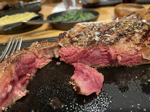 We were expecting salt bae/nusret to be around serving us but in reality, none. There were 3 of us ordering food for 4 serving including kobe beef steak, nusret burger and nusret special for 2. First came the kobe beef, i would say 3/5 nothing special but okay; The second one we had nusret burger 4/5, awesome burger and very tender pinkish meat; Last not the least nusret special with their signature style of cooking, rare tenderloin meat sliced and cooked in hot butter and i should say this is GOOD 5/5!!!