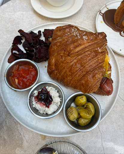 Read moreA good place to hang out with a pretty atmosphere and a spacious garden. The croissant I tried was crunchy but maybe a bit more than it should be. However the ingredients inside tasted good and the sides were also tasty especially the grilled red pepper. The chocolate croissant that is circular unfortunately had a weak dough texture that needs work on its recipe but it is a tough one to make so I can understand that is hard to get it to perfection. Also its filling was very little. It definitely needs to have more filling that oozes out of it once you slice it in half. Other than that, the service was great and the waiters were friendly and I liked the garden outside and its atmosphere. I would recommend it for a hang out and a bite with...