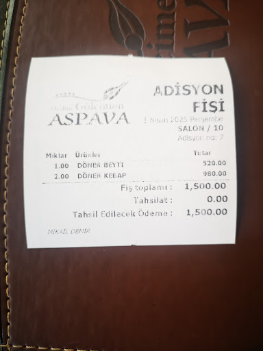 Read moreThere are like 100 Aspavas in Ankara. This one was ok. We ordered the classic meat rolls which had a kind of challenging- to-bite bread. We asked for the one with cheddar cheese but it came with “kasar” cheese which is basically toast cheese. When I asked where the cheddar cheese was, they answered “farketmez” it is the same 😂 but of course it is not! The meat tasted good but the roll was not so tasty. With your order you get lots of side dishes like fries with cheese, cig kofte, and salad. After the meal they served us tea and kunefe. Each one of us paid 45 TL (November 2021) not bad but I don’t think I’d crave to go back there again...