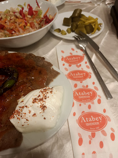 Bugüne kadar Adanada İskender nerede diye sorsanız Atabey derdim. Fakat bugün fikrim tamamen değişti. Saat 18:45 gibi yemek yemek için Atabey İskendere girdik. Siparişlerimizi verdik ve beklemeye başladık. Saat 19:08 hala siparişlerimiz yok. Çalışan arkadaşlara acelemiz olduğunu, eğer yemek gecikecekse kalkabileceğimizi söyledik. Hemen geliyor dediler. Bu arada içerde paket kesilen dönerin tamamını paket yapıyorlar. 10 dakika sonra arkadaşlardan birini çağırdım. Acelemiz olduğunu, yemek gecikecekse kalkabileceğimizi tekrar belirttim. Hemen geleceğini söyleyerek tekrar içeriye girdi. İçerde kimseyi umursayan yok. Pakete devam... 10 dakika daha bekledim ve sonra çalışan arkadaşlara sitem ettim. Yoğun olabilirsiniz, paket servise yetişemiyorda olabilirsiniz. Fakat müşteriye siparişinin gecikeceğini işletme olarak söylerseniz, hem müşteri kendini ayarlar, hemde müşteri kaybetmezsiniz. İşletme müşteri gelsin, ne kadar beklediği, memnun olması çokta önemli değil mantığında diye düşünüyorum. Çalışanlar ise aksine o kadar ilgili. Bu arada 40 dakika sonra gelen İskender buz gibi. Üzerine dökülen yağın değmediği etler buz gibiydi. Yani müşteri memnuniyeti sıfır. Lezzet sıfır....