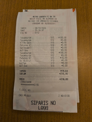 Read morearkadasimla beraber gittik garip bi kokusu vardi 15 20dk bekledik bizden sonra gelenler bizden once alip yedi isn ciddiyetinde degiller hep guluyolar sohbet ediyolar hic hijyenik degiller gelen gecen icerden gelip hamburgerlere dokunuyo ustelik patatesi biz geldikten 10dk aonra koydular geldiler sohbet ettiler kolayi doktu tepsiyi temizlemeden musterilere verdi mudurde bile ciddiyet yok milkshake kopuk halindeydi dokup dokup doldurlar...