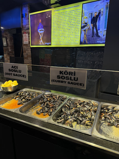 Read moreDaha önce Kadıköyde ve Tuzlada midye-kokoreçini yediğimiz için yorumlara bakmadan burada da denemek istedik. Midyesi çok çok küçüktü, görselini paylaştığım fotoğrafta gördüğünüz küçük midyenin içinde çok az pilavı yok denecek kadar midyesi vardı, hatta yoktu.