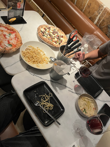I wish I can rate this place a 4.5 in respect for the good pizza dough prepared in compliance with the Napolitan Pizza traditional style, but some the toppings were slightly compromised probably due to exchange rates, for example there is no D.O.P Parmigiano Reggiano and most importantly D.O.P Buffulo Mozzarella, a 2 key ingredients of any La Verace Pizza Napoletana (the real Naples style pizza). They are now using D.O.P Grana Padano which is a cheses similar to Parmigiano Reggiano but not the same, Parmigiano Reggiano is far more superior to it. Non the less the most important component is there, the dough which is prepared following strict steps and made with only four essential ingredients, (farina, acqua, lievito e sale) which means flour, water, yeast & salt. then cold fermented overnight for 8 to 18 hours then baked in a special Napolitan oven in a temperature over 480°C. The dough in this style of pizza accounts for 80% of its success the rest are divided in three parts between the mozzarella, tomato sauce and the rest of the toppings. And sinvce the tomato sauce is an un treated san marzano d.o.p. tomatoes and applied in the right amount, then you can add another 7% to the tomato sauce in your rating, therefore, any pizza you eat here should rate above 87% based only on the dough and tomato and it can rate higher for the rest of the ingredient. BUT, in this is a big BUT, if you add too much of toppings, then you might take away from the good effect of the dough and tomato. And this is why I was hesitant to give Nappo Pizza a 5 0ut of 5.