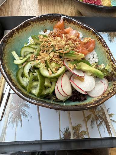 Read moreThe only reason I gave this place a 2 star is because the service was kind and friendly, the space is cute too. However, the poke was not delicious at all. I was super hungry and wanted to get some protein so I got the fit bowl option, I got mine with tofu which unfortunately seemed fried rather than baked which is not the ‘fit’ way to do it at all. The bowl was generally bland. As I waited for my order I noticed that some of the ingredients on the counter looked okay but others like the strawberry and 2-3 more ingredients did not look fresh, which kind of discouraged me from trying my order. I recommend improving by first checking that all the ingredients on the counter are super fresh and second by not frying the tofu especially not in a “fit” bowl. I like the restaurant’s concept but judging by today’s experience its unlikely that...