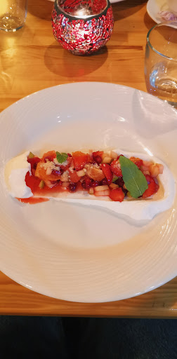 Read moreTijdens mijn vakantie 2 weken geleden hier gegeten. Via Google maps zocht ik nog een leuk restaurant dat niet de standaard "steakhouse" was. En wat bleek deze was 5 min lopen van ons hotel. We werden hartelijk ontvangen. De inrichting was modern stijlvol met een wijnmuur. Ze hebben de voor een 3-gangenmenu voor een vaste prijs. Online had ik kokos curry gezien, dus dit leek mij wel een goede optie. De obers waren super vriendelijk. Jammergenoeg was de menukaart al veranderd dus was er geen curry meer. De chef kwam aan tafel om wat bevelingen te doen. Vooraf kregen we een lekkere simpele salade. Ik koos de lamskotelet met rodewijnsaus en mijn moeder nam de zeebaars. Het vlees was zoooo perfect medium gebakken, het smolt op mijn tong. En de saus was heerlijk. Ik had mijn bord willen schoon likken.🤣 De vis was ook goed. Naar mijn mening was de asperge wat te gaar, ik heb liever een bite. En de wortels daarentegen waren voor mij te hard. Verder prima. Als toetje hadden we een huisgemaakte sorbet met granaatappel en aardbeiensaus. Ook lekker. We hadden ook nog een leuk gesprek met de eigenaar van het restaurant. Bij het afrekenen sprak ik nog met de chef en zei hij zei:" als je de volgende keer komt maak ik die curry voor je!" Zo gezegd zo gedaan. Een paar dagen later kwam ik in de middag langs om te laten weten wanneer we kwamen zodat de chef hier op was voorbereid. Op onze een na laatste avond kwamen we weer dineren. We werden door iedereen begroet alsof we elkaar al jaren kenden. Heel hartelijk en persoonlijk. Erg prettig. De shrimp curry was lekker en goed gevuld met garnalen. Dus het was het allemaal waard! Na het dessert kwam de chef nog aan tafel thee met ons drinken. Hij sprak met zoveel passie over zijn liefde voor koken en dat merk je ook aan zijn kookkunsten. Dit was onze eerste keer in Alanya en eerste keer in Turkije. Dank aan al het personeel , het was een mooie warme ervaring die ik in geen ander land heb gehad. Ik heb er nu een Turkse...