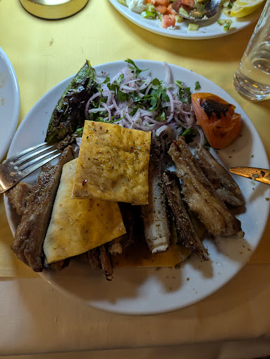 The restaurant is on the waterfront. It is attached to a hotel. We were the only customers. The waiter seemed very proud of their adana kebab, so we ordered that along with some lamb chops. It was probably the best adana we have ever had. The Lamb chops were tender and cooked perfectly. We were served eggplant, yogurt, bread, and tomato salad for free. Dinner with wine and tea was very reasonable price. Highly....