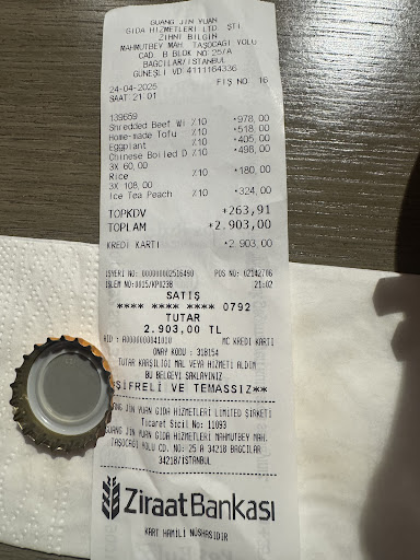 Read moreScam.. Be careful about the bill. They add extra things and extra costs to the meals. For example, the white rice on the menu is 50 TL, they add 10% service charge but it is still 60 TL (not 55). All meals are like this. There are 3 of us, only 1 of us drinks fruit juice, 108 TL but they charged 324 TL for 3 drinks… (108 is too much for a bottle of fruit juice) The ladies there are Chinese. They don't speak English or Turkish. We told them that we only drank 1 drink, not 3, and that they needed to fix the bill. Their apologies and explanations were even funnier "they don't have what we ordered right now, so they brought us another dish and wrote 2 more fruit juices as an extra meal difference" Actually, our orders on the menu were exactly what they ordered. Come on... even the street vendor doesn't do this with impudence and acts...