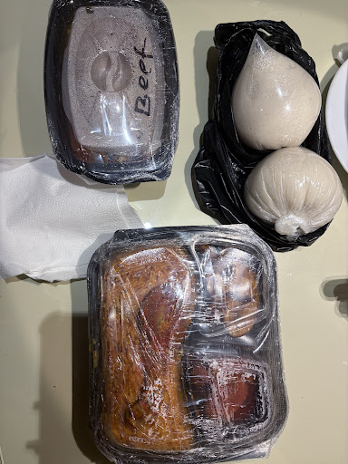We had Egusi and poundo, goat pepper soup, nkowbi, fried rice and goat beat. The soups were richly flavored, seasoned just right, with that unmistakable taste of traditional African cooking. The Egusi was especially comforting, with tender meat and a thick, flavorful texture that clung beautifully to the pounded yam.