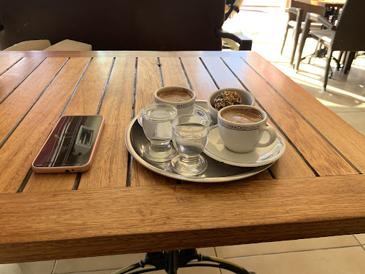 Merhaba arkadaşlar. Pazar pazar bi kahve yudumlamak için yakınımızda bilindik bir yer aradık ve MADO ya karar verdik. İçeride herşey güzel mekan temiz, ferah kalabalık olmayan sakin bir ortam var. Evet güzellikler var fakat eksik olan tarafları da yok değil. Çağırmazsan kimse kimsin necisin ne istiyorsun gelip sormuyor çağırırsan eyvallah. Ayrıca böyle bir mekana böyle bir servis yakışmıyor. Evet Türk kahvesi siparişimiz geldi gelmesine fakat vatandaş getirdi önümüze tepsiyi koyup gitti. Kendi servisini kendin yap. Biraz da tatlardan bahsedilim. Kahvenin tadı vasat diyebilirim. Yanındaki kurabiyeler kendinden bezmiş gibi duruyorlar. Onu bari ayrı ayrı fincanın yanına koysaydınız daha iyi olurdu. Adı lüks hesabı...