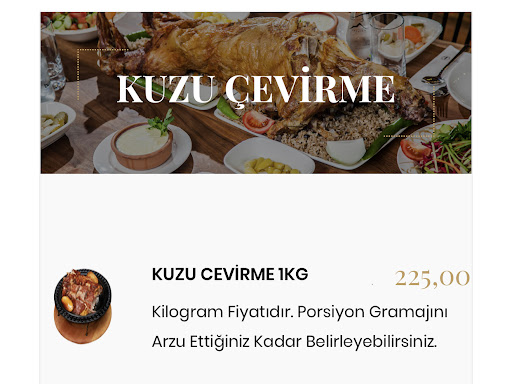 Read moreThis place is one of the BEST in Istanbul.. I highly recommend it for meat lovers, especially the Kuzu Çevirme 1 Kg. You get to taste pure lamb meat grilled on wooden fire. I tried it with a friend and we never regret it, although the price is quite higher than usual, but it’s worth every penny. Tea and Turkish coffee are on the house and the place is very clean. Staff were really nice. I also noted something interesting; due to the COVID-19 crisis, they offered an electronic copy of the menu with a code that can be used to access it by your smartphone without touching the menu physically.. I think this was very professional. Perhaps the only disadvantage of this restaurant is that it’s quite far from the heart of Istanbul. It is generally close to Mall of Istanbul. I highly...