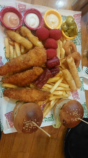 Turkiye maçının olduğu cumartesi akşamı gittik. Öncelikle fiyatlar ve yiyecekler çok iyi. Gorseldeki koca tabak 500 lira. 3 kişi için yeterli bir tabak. Oturma alanlari vs her seyi güzel. Ücretsiz kanallarda yayinlanan maçları da yayinliyorlar. Biranin yanina yesil zeytin ve salatalik turşusu geliyor. Buraya kadar her şey harika. Gelelim puan kirilacak mevzuya. Garsonlar gerçekten sorunlu. Fistik istedik gelmedi. 3. Soyleyisimizde ancak geldi. Oturdugumuz masanin sag tarafi iceriye bakan yari camdı. Garson siparişi sormak için kafasını ordan bir daha uzatıp sordu bi anda. Tahmin edersiniz ki bir korku yaratti 1 saniyelik :) Garsonları hariç güzel mekan. Bir kere daha...