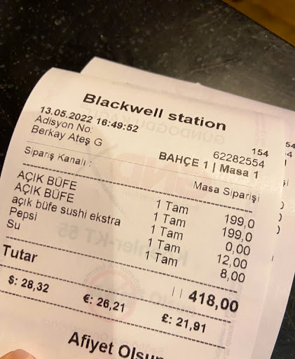 Read moreSo this was a bust, I only go to Turkey for holidays yearly, and I've been told the sushi scene is dissapointing, but I wanted to give it a chance at this place after craving it, as im here for a couple of weeks., the place is in an idyllic location, atmosphere is 10/10 but the sushi??? If you can even call that sushi, the rice was a whole dough clutter. Presentation looked nice, but it tasted like someone brought basic ingredients and tried making sushi at home for the first time. I feel sad that istanbul dont really have good sushi, and people there (the locals) thought they're eating good sushi, made me cackle 🤣 also the payment at the very end, you need to walk into a receptionesque room to pay, very overpriced for below...