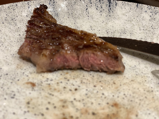 The steak, a central piece of any steakhouse menu, was good but had some inconsistencies. Although ordered medium, it varied between medium and medium rare across the cut. The exceptional quality of salt provided on the table was a nice touch, enhancing the flavors beautifully. However, a minor quibble would be the knives, which could be sharper to match the quality of the steak, leading to a rating of three and a half stars out of five for the steak.