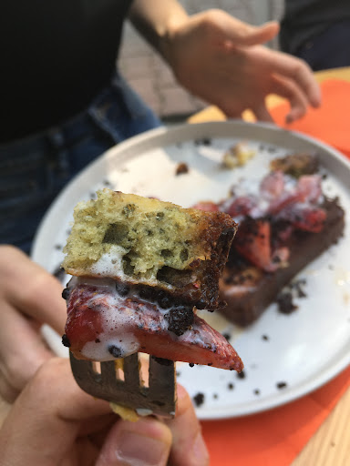 Full of surprises : 1- They served 2 plates with avocado... without avocado (without telling us). Surprised, we asked and “ah yes we don’t have avocado anymore” ... And they charged the full price for those plates 2- The brioche bread with crumble and strawberry was Rotten. Health hazard type rotten. With green wildlife growing on it (see picture)