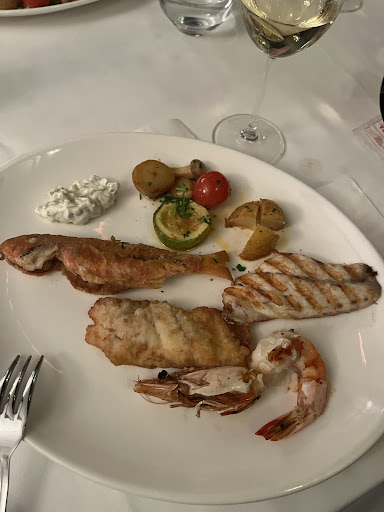Our choice fell on this restaurant, which I do not regret in the least. It is disconcerting that the restaurant is allowed to visit with children and this is a big +. Now a little about the kitchen. We ordered vegetable salad, grilled jumbo prawns and baked octopus in white wine and fish (sea bass, I don't remember the second one) and proseco for an aperitif. All dishes were very tasty. The only thing we did not like was the serving of fish. We asked for the filet. The photo clearly shows how it does not look beautiful and you don't really want to remove fish bones from fish. There are no questions about cooking fish, juicy and very fresh. Please reconsider the fish serving. The staff is 5+. You have a great team. THANK YOU FOR YOUR HOSPITALITY:-)