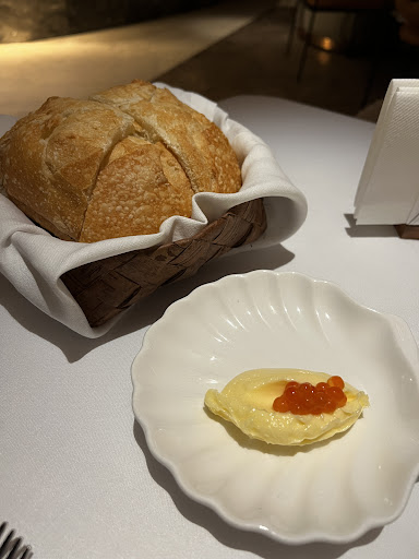 Hot bread with butter&caviar and little lettuce tuna tartar are always as a compliment before your meal which cannot be not mention, it really makes me to want come back again and again☺️ Also there is a sweet little compliment in the end, usually differs: it can be an ice cream or juicy small ball.