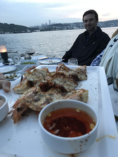 Read moreDon’t waste your time looking for a menu online. There is none. The website doesn’t even have a non-Turkish version. There is no menu at the restaurant either. And the staff, although friendly, and considering a popular with locals and tourists, a high priced restaurant, surprisingly only spoke Turkish, so a bit challenging to communicate what you want to order, ... remember there is no menu. You point from the meze display, and you point from the seafood display... that’s it! The food was very good though. The salads where a highlight and the fruit plate was large. And baklava wasn’t bad either. Try to reserve a table on the dock, and near sunset. Tip: the boat shuttle will pick you up from the European side (dock is opposite Lokma), and make sure you let the restaurant staff know you need one back. They will arrange...
