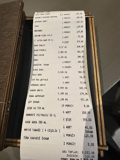 Read morePositives: The format offered is basically pick meat from a display (and other accompanying plates), cook it yourself at the table. They have a selection of kebabs, lamb and beef cuts, etc. The place is clean, other than the cigarette smell that plagues most restaurants in Turkey. Some of the staff speak English, they are also friendly and willing to help. Cons: I am not really for going out to eat at a restaurant and cook my own food. The server we got, in contrast to the gentleman who helped us select the meat cuts, was rather rude. He was not willing to make a minimal effort to communicate with us, and was throwing the plates and glasses at the table, very unprofessionally. There is also the fact that the stakes were silced very thin, like 1/4 inch. in order to seal any sort of flavor into the meat the cuts must be thicker. I understand that for some customers the idea of cooking their own food, in a Korean restaurant fashion, might seem appealing. But considering their prices, It is my opinion that they can cook it before...