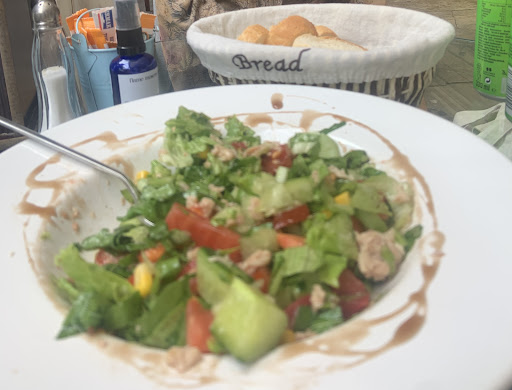 Read moreWe were walking past and saw the menu displayed outside so stopped for a Sunday breakfast. Only another couple in the restaurant so service was quick. We sat outside with a garden view and chickens crowing below. There is a furniture restoration room behind... so was rather surreal. The plain omelette was slightly overdone and the traditional breakfast with olives, cheese etc a bit bland. Also the request to change the included-tea for a coffee was not...