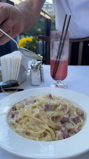 The menu shines with Italian favorites, like pastas, pizzas, antipasti—those tasty little starters—and hearty mains. We went for pastas and sampled the salmon too. The carbonara stole the show: pasta cooked to perfect al dente, with a silky, cheesy sauce that hugged every spaghetti strand just right, plus plenty of perfectly crisped pancetta—easily one of the best we’ve ever had. The truffle pasta was enjoyable, though a touch behind, as the truffle hint was subtle, more like a creamy mushroom vibe. The salmon with spinach was masterfully done, tender and juicy inside, with a thoughtfully spiced side featuring clever apricot touches for a great main. Portions were plenty generous. The only miss was the breaded calamari—super bland, and even sauce or lemon couldn’t perk it up; a dash of salt might fix that.