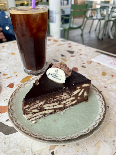 Luckily, even though we went on a Saturday at 12:00 PM, there were still seats available on the terrace! We ordered Turkish coffee, an iced americano, a mosaic cake, and a cinnamon bun. The coffees were great. The mosaic cake was far better than most I’ve had elsewhere, especially the chocolate, which was excellent. The cinnamon bun was soft, moist, and delicious.