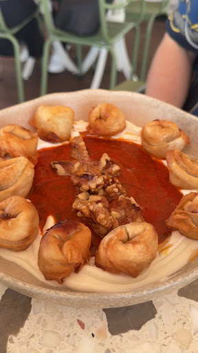 The kitchen impresses with a full menu available from early morning, a rarity in the area. The tomato soup was a standout, rich and well-balanced with a vibrant depth of flavor. The potato frittata, while not quite true to Spanish tradition, was enjoyable, with a fluffy omelet complemented by well-seasoned potatoes. The crispy mantı with meat filling was delightful, though the filling itself could have packed a bit more punch. The chicken with pearl barley was a mixed bag—the chicken leaned dry, but the barley was a revelation, cooked to perfection with a comforting, nutty flavor. We capped the meal with the local favorite, the Basque cheesecake, which was indulgent and tasty but a touch too rich to finish in one sitting.