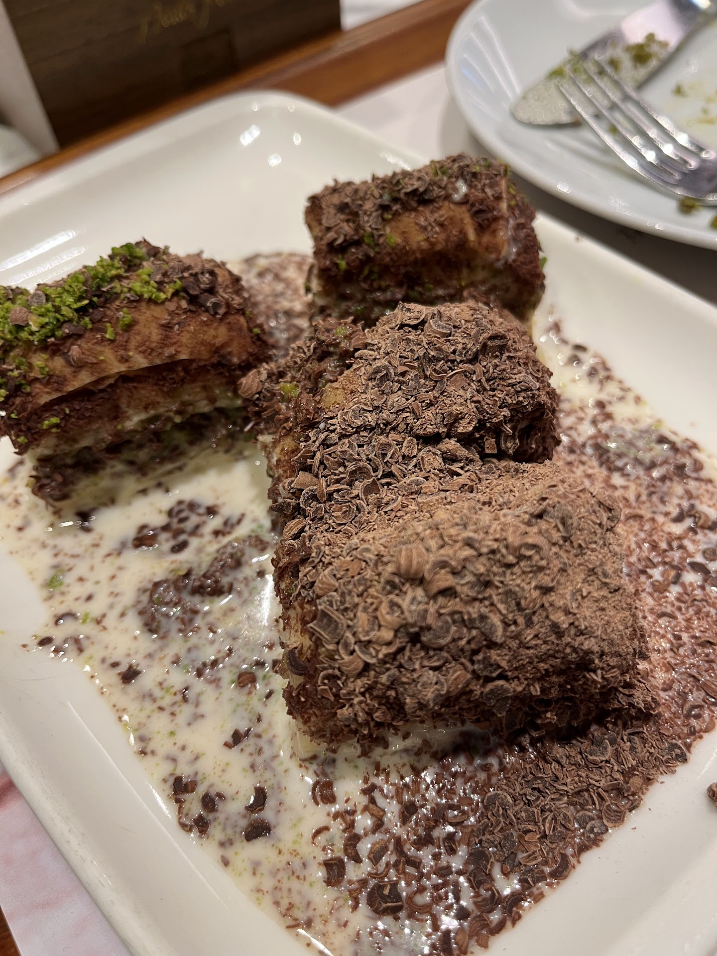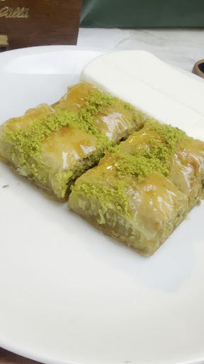 Read moreWhat an amazing experience for a Tuesday evening in Istanbul. We came in through the back door and into their back court. Place was huge, good lightning, it gave us a warm feeling, also and full of customers enjoying pastries and teas. As you go in the place, you will find different sections. Staff was helpful guiding us to which ones we needed: eat in, take away, Turkish delights, tea. So many options to choose from. The rotating screens will show you ingredients and pictures for every available baklava. Products sold by weight, easy. I chose the smallest box and picked 3 pieces and paid about 101tl.