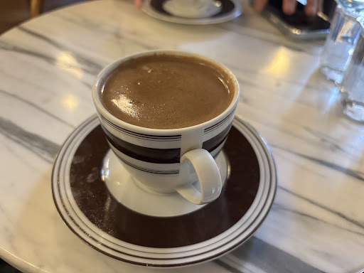 The texture of the coffee is smooth and thick, with a fine layer of foam on top—exactly how it should be. It’s strong, but not bitter, and the flavor lingers in the best way. They serve it in traditional cups, accompanied by a glass of water, which adds to the experience. There’s no unnecessary fuss or modern twist—just a deep respect for the traditional craft, and that’s what makes it so special.