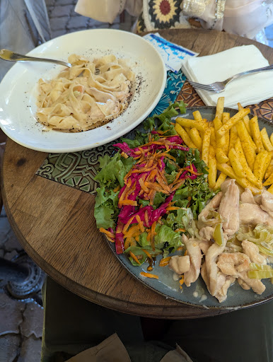 So sad we discovered this little gem on our last day... My friend had a delicious pasta, chicken, and isot dish, which was incredible, and she's very hard to please. The sauce was amazing, the portion was generous, and everything was really tasty. The welcome was very warm, and the owner and his wife are lovely. I also loved the decor. I would love to come back for coffee and desserts, which also look delicious. The menu seems more suited for breakfast and lunch, but it works for a last-minute dinner too. The prices are more than reasonable for the area. Thank you for your thoughtful attention. I would recommend...