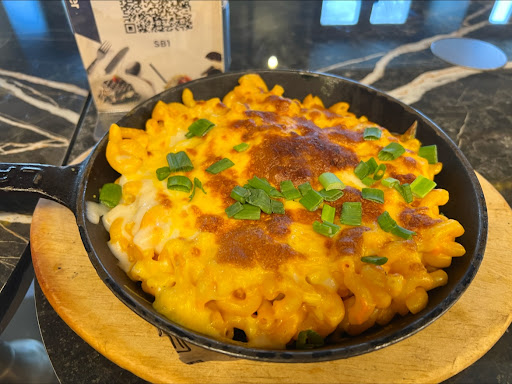 The menu is extensive and only accessible by QR code so you will need a phone with service or to connect to the WiFi. The menu offers everything from snacks to pizzas to Korean food and burgers to a small Vegan selection.