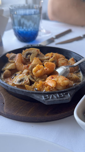 Eleos specializes in seafood, with an array of meze and appetizers showcasing the bounty of the sea. We sampled a variety of dishes, starting with pan-fried shrimp in oil. While the presentation was appealing, the shrimp tasted more boiled than seared, lacking the bold flavor we’d hoped for, though the accompanying mushrooms were a delightful standout. The local delicacy of mussels with rice, however, fell flat; the rice overwhelmed the subtle mussel flavor, and we’ve tasted more memorable renditions elsewhere. The grilled mackerel was a highlight, lightly seasoned with spices and marinade, boasting a tender, bone-free texture that made it both flavorful and satisfying. The grilled shrimp, while slightly dry, were redeemed by a flawless creamy butter sauce infused with spices, which balanced the dish beautifully.