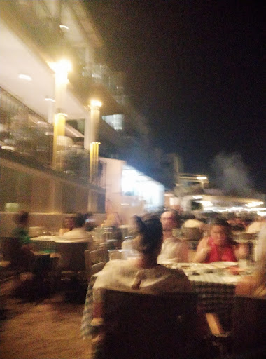 This is a nice place at the hearth of bar street near the seaside. As you can imagine it has an amazing view and athmosphere. Stuff are all caring and the serve fast. Really fast. They change your ashtrays before you noticed and supply ice before it is finished. However the mezes are not very tasty. For instance the so-called saganaki fried cheese was nothing similar to the one in Greece. Other mezes AR ok but you won't say wow when you eat them. Toilets are ok. Not that clean or dirty but insufficient compared to the restaurants capacity. There are two annoying thing in this place. First thing is there are other places near Müdavim and they play chill out loudly. God you can't hear eachother and have to shout out loud to speak. The tradition of meyhane (tavern) is that slow music not loudly covers the athmosphere and you chat with your friends while you drink rakı (ouzo) and eat. That is not possible here. Other problem is that the tables are so close to eachother. There is a mass of crowd on the beach sitting and drinking very close to eachother. That is not good fo covid19. So I can only recommend this place on day time and winter when there are not...