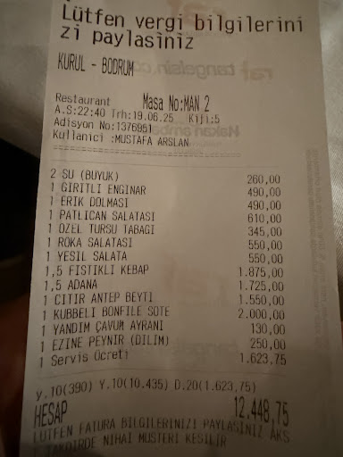 Read moreI am pretty much satisfied with the food and the atmosphere as well as the service. Food was good , presentations were excellent. When you go to a kebap place in Turkiye they will serve you lot of mezes to start with.They bring you a tray of mezes so that you can chose what you want. The baloon bread with tulum cheese(strong cheese) and butter follows your order. This is a traditional serving style nearly every kebap restaurant. We had mixed pickles , artichoke and charred eggplant salad . They were all good except artichoke. Our second plate was fried liver which was great. We ordered Adana kebap to share and we loved the tenderness and the taste. Final hit was a dessert called something Catalan which was also great. Service was good but the garden and the decoration was exquisite. I am giving a full 5 stars. It is worth visiting. May be a pricey choice but good for...