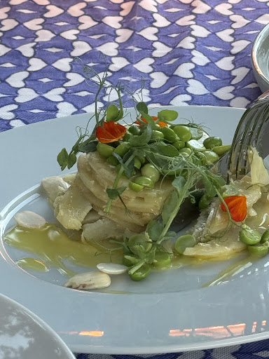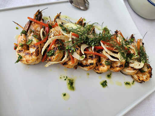 Read moreThis is probably the most famous hotel restaurant in Bodrum, and I've had the pleasure of visiting numerous times. My review this time is about the daytime restaurant. We were given a beautiful table overlooking the sea, but unfortunately, not all tables are well shaded from the sun, and in July it can get quite hot. The daytime menu is completely different from the dinner menu. Although it's simple, I was hoping they would offer something a little more unique, considering how distinctive the nighttime menu is. We ordered a grilled seabass, which was perfectly cooked, along with grilled jumbo shrimp that were still juicy. We also had an array of mezze salads from the daily buffet to complement our main dishes. The service was exceptionally friendly and attentive, enhancing our overall experience. The only minor drawback was the...