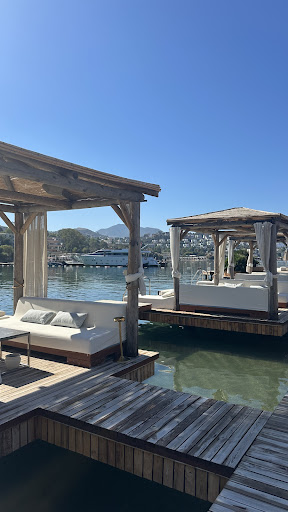 We booked a day on the sunbeds on the decking. The atmosphere and the vibes were great, nice and chilled out but with a dj playing good music. People weren’t rowdy/ loud. There’s a minimum spend for reserving the sunbeds but spending the day here it’s not unreasonable, me and my partner had a pizza each and a side of fries to share at lunch, a baklava dessert each, and overall 2x Efes, 4x mojitos and 2x coke zeros and we just hit the minimum spend required (which was around 7000tl ~ £160). This was from 12-7pm.