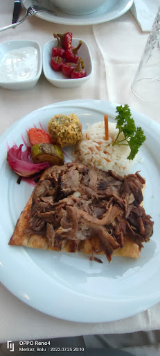Öncelikle on yıldız olsa kesinlikle on yıldız verirdim. Mekan çok güzel temiz ferah ve kaliteli, karşılama ilgi alaka harikaydı kesinlikle iddia ediyorum Bolu da böyle başka bir mekan yok. İşletme sahibin tüm masaları tek tek gezip güler yüzlü bir sekilde sorması çok ama çok samimi ve içtendi gerçekten teşekkürler. Yemeklere gelince Bolu Beyi çorbası ile başladık lezzeti kesinlikle mükemmeldi. Ara sıcak olarak etli yaprak sarması ve kaşarlı istiridye mantarı aldık tadı damağımda kaldı her ikiside güveçte geldi on numaraydi. Ana yemek olarak Abant kebabı ve Değirmen Kebabı aldık Abant kebabindaki 8 saat pişen et mükemmeldi altındaki etin yağına batırılan pide varya anlatılmaz yenilir (pilav soğuktu sıcak sunulmasını isterdim). Değirmen kebabı lezzetli ve oldukça doyurucuydu. Tatlı olarak Bolu Beyi tatlı kesinlikle ve kesinlikle harikaydı ekmek kadayıfı ile kabaklisinin uyumu mükemmeldi birbirlerine çok yakışmış tatlının üzerine biraz daha ceviz olabilirdi ve kaymak olmasa da olur fabrikasyon kaymak pek olmamıştı. Yemek sonrası sunulan çay gerçekten tazeydi. Mekan kaliteli yemekler harika fiyat tüm samimiyetimle uygundu. Bu lezzete bu fiyat bence azdı. Bolu'da kesinlikle uğraması gereken bir yer pişman olmazsınız....