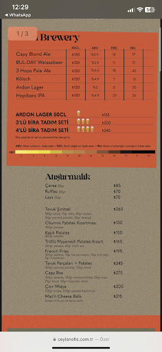 18 Şubat 2025’te gittik 3 kişi. Açıkçası sürekli reklamını yaptıkları kendi biralarını tatmak için gittik ancak 6 biradan sadece 4 tanesi vardı. Kölsch ve Ardon Lager yoktu. 4 tanesinin içerisinde sadece 1 tanesi buğday birası. Biz onu sevdik. 3’lü karışım ise ağır tat sevenler için ideal. Diğer 2’si size kalsın 🙂 Servis personeli ilgiliydi. Biralar hakkında bilgi verdi. Ekstra birşey sormadık, ezberletilen metni okuduğu belliydi açıkçası. Bunu da normal karşıladık. Yiyeceğimizin porsiyonu yeterliydi. Hatta birçok yere göre fazlaydı. Ancak; ❌Biz oradayken 1 köpek bir 2’li koltuğu kaplayarak yatıyordu. ❌Yine biz oradayken 2 büyük köpek daha geldi. Elbette ki hayvan sevgisi var hepimizin içerisinde ancak bu kadarı da fazla değil mi? ❌Yiyeceğimiz dışarıdan getirildi, sanırım mutfak dışarıda. Ve mekanın önündeki yol gerçekten kötü/pis ve inşaat halinde. Oradan geçti personelin elinde. Bunu asla istemezdik. ❌Menüdeki el yapımı 2 biranın olmaması olumsuzluk. Ayrıca menüye 6’lı tadım seti de eklenmeli. ❌❗️❌❗️ Oturma yerleri aşırı kirli ve pis. Bunları değiştirmek bu kadar mı zor? 💰❌Tuborg 50cc fıçı 145₺. Hemen bir adım uzağındaki birçok mekanda ise güzel kampanyalar var ve Tuborg 50cc 85₺-100₺ bandında.🤷♂️