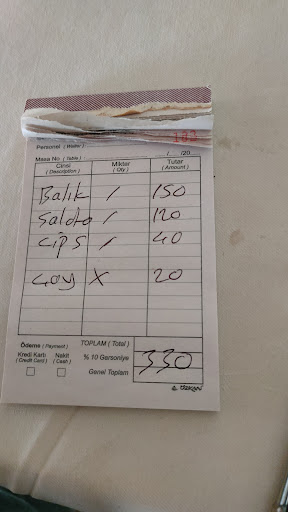 Read moreWe ordered a fish for 150tl. The owner said that salat is included to this price.