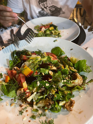 Read moreBizim için 1 saatliğine zaman durdu bu akşam yemeginde. Mersine yolunuz düşerse ki bence mutlaka düşmeli inanılmaz lezzetli yemekleri var. Biz şefin salatası ile başladı sarımsaklı ekmek ile birlikte salata cidden efsaneler arasında mutlaka denemelisiniz tadı dilimizden midemize kadar indi. Sonra tavuk ve levrek istedik her ikiside nefis tatlardi. Belçika mutfağı ve türk mutfağı lezzetleri harmanlanmış bence çok lezzetli olmuş. Isletmecisi inanılmaz güler yüzlü, eşi ahçı kendisi belçikalı çok tatlı, oğulları ve yardımcı personelleri çok ilgili güler yüzlüler 11 yıldır işletilen bir mekanmis çok uzun yıllar devam etsinler. Üzüm asmasinin altında bir akşam yemeği vaktinde zamanı nefis tatlarla durdurmak isteyenlere tavsiye ediyorum. Tekrar teşekküler ellerinize ve...