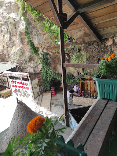 içeri girince otantik bir mağara sizi karşılıyor olucak . Urfa insanın mütevaziliği ve misafirperverliği hemen çift mağara personelinde belli ediyor kendini . İçeri girince çift mağara Sahibi Mehmet çiftçi karşıladı bizi . Mehmet beyle tanışmadan çift mağarada sipariş vermeyin . Mehmet beyle güzel bir Urfa sohbetinden ardından yemek siparişi verdim .